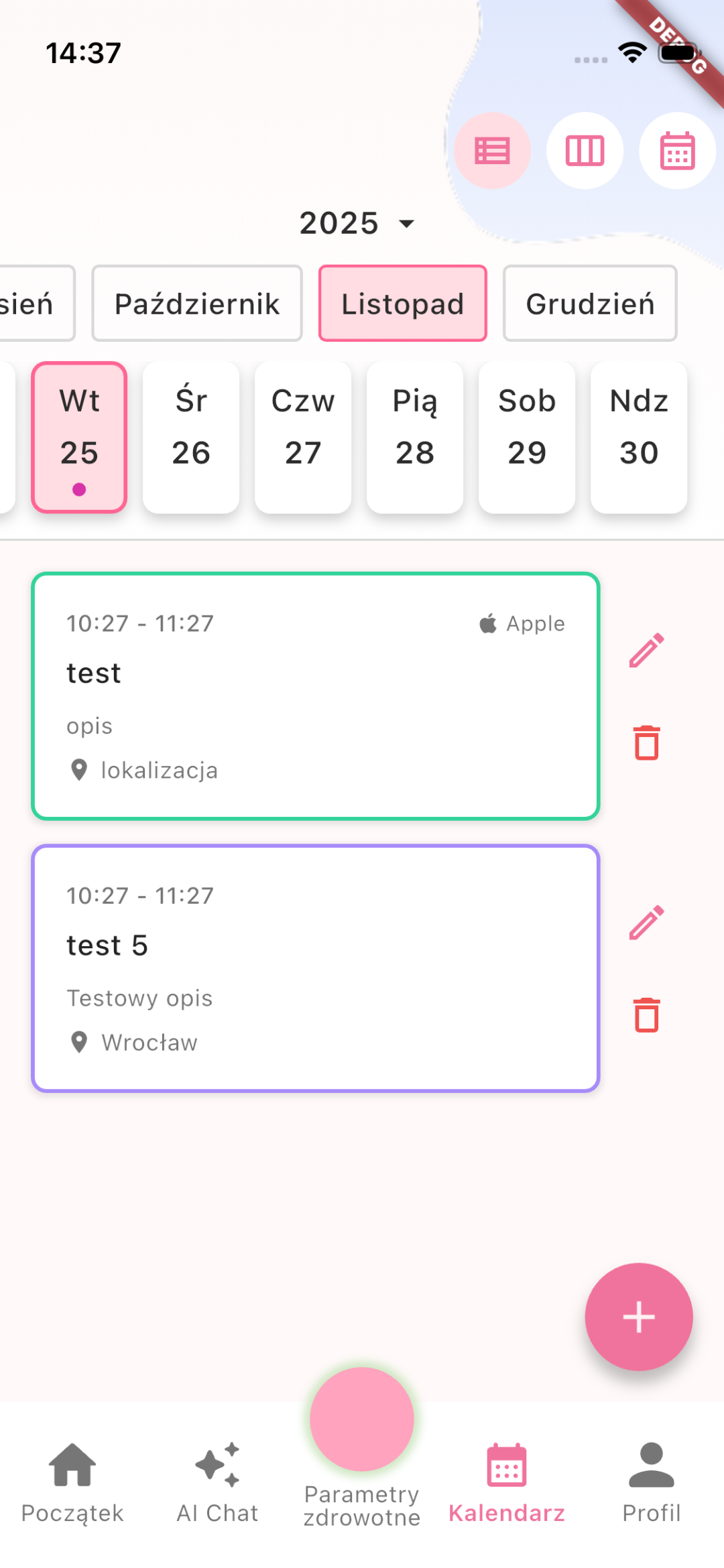 Schwangerschaftskalender – eine erweiterte Zeitachsenansicht zur Verfolgung des Wachstums des Kindes, von Arztterminen und wichtigen Meilensteinen, die die Planung des Weges bis zur Geburt erleichtert.