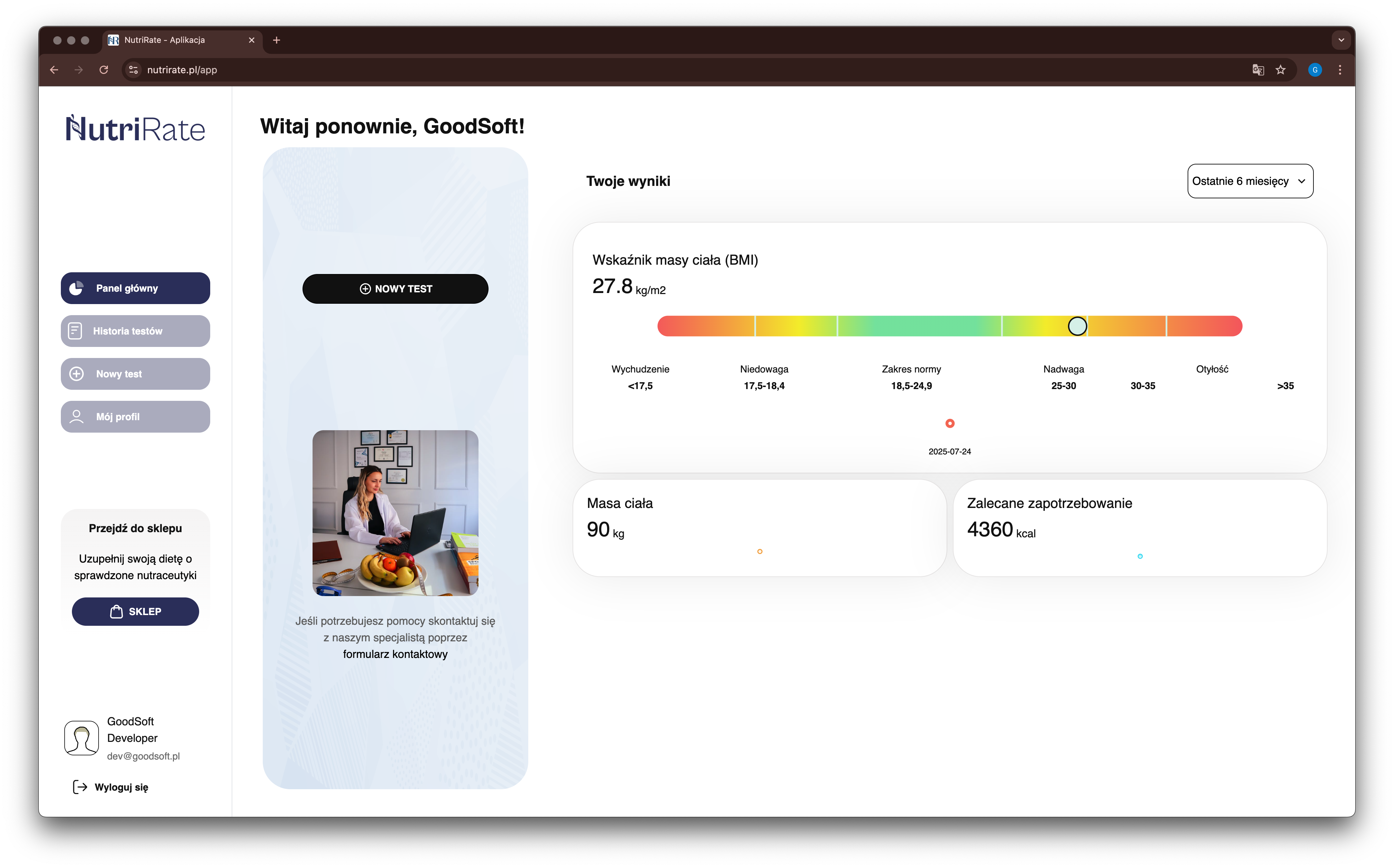 Ekran Dashboardu aplikacji
